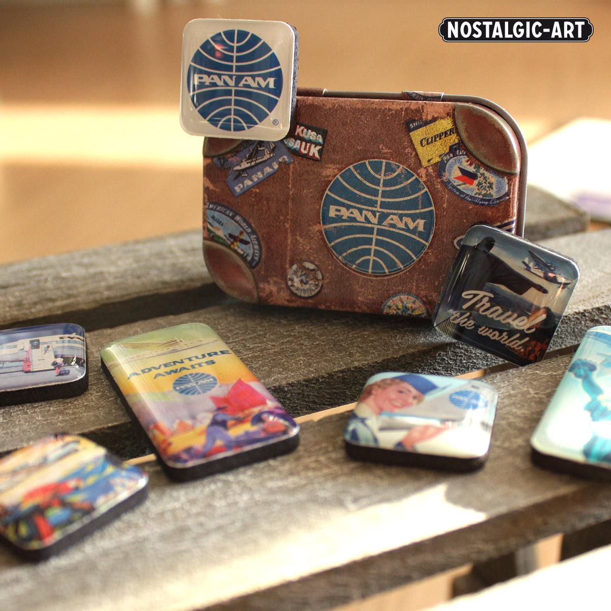 Die Pan Am Retro-Kollektion erweckt die goldene Ära des Reisens wieder zum Leben. Mit nostalgischen Blechschildern, Pillendosen, Magnet-Sets und Aufbewahrungsdosen fängt sie den Luxus und das Abenteuer der ikonischen Fluggesellschaft ein. Ob Pan Am Logo oder Retro-Sticker – jedes Produkt erzählt Geschichten von fernen Orten und großen Abenteuern. Perfekt für Reisebegeisterte, die ein Stück Fluggeschichte in ihr Zuhause bringen möchten.