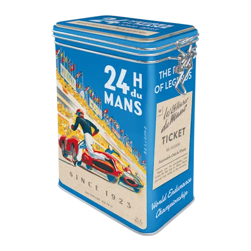 Die 24h von Le Mans Retro-Kollektion zelebriert eines der bedeutendsten Rennen der Motorsportgeschichte. Seit 1923 stehen die 24 Stunden von Le Mans für den ultimativen Test von Geschwindigkeit, Ausdauer und technischer Präzision. Unsere Kollektion umfasst nostalgische Metallschilder, dekorative Pillendosen und funktionale Thermometer, die die legendären Momente dieses außergewöhnlichen Rennens einfangen und ein Stück Rennsportgeschichte stilvoll in Ihr Zuhause bringen.