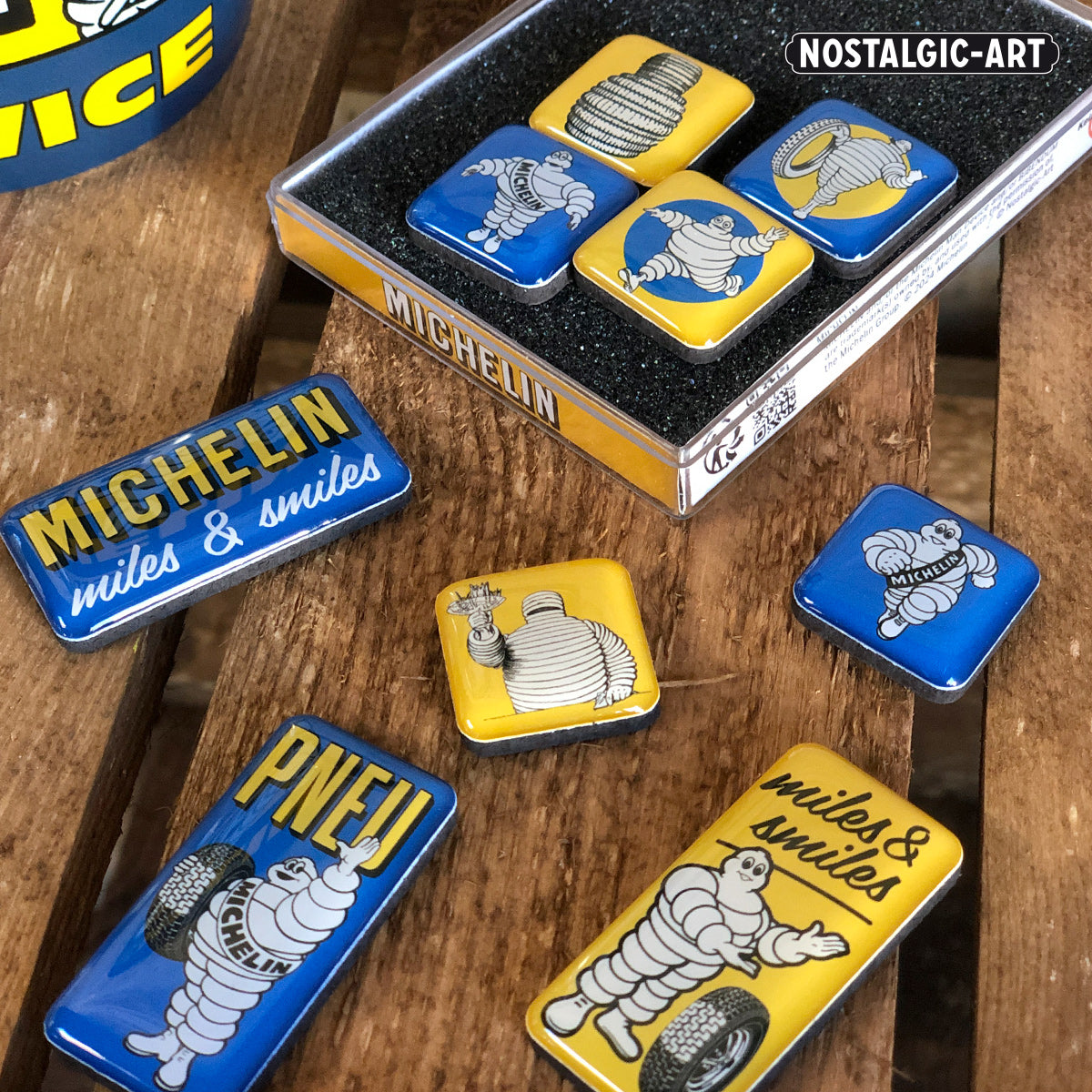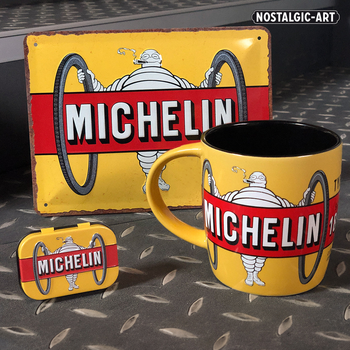Die Michelin Retro-Kollektion feiert die ikonische Marke mit stilvollen Produkten, die das Erbe von Michelin widerspiegeln. Mit Blechschildern, Thermometern, Wanduhren, sowie Emaille- und Keramikbechern bietet die Kollektion eine vielfältige Auswahl für Sammler und Liebhaber. Hängeschilder und dekorative Dosen runden das Sortiment ab und bringen den unverwechselbaren Stil des Michelin-Männchen in jedes Zuhause.