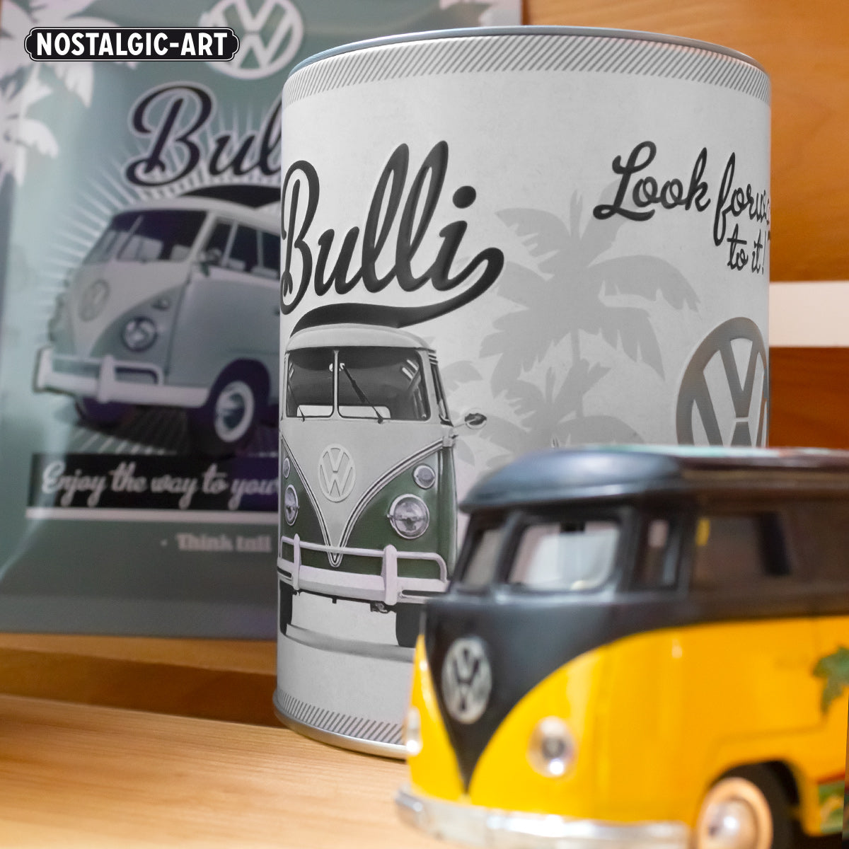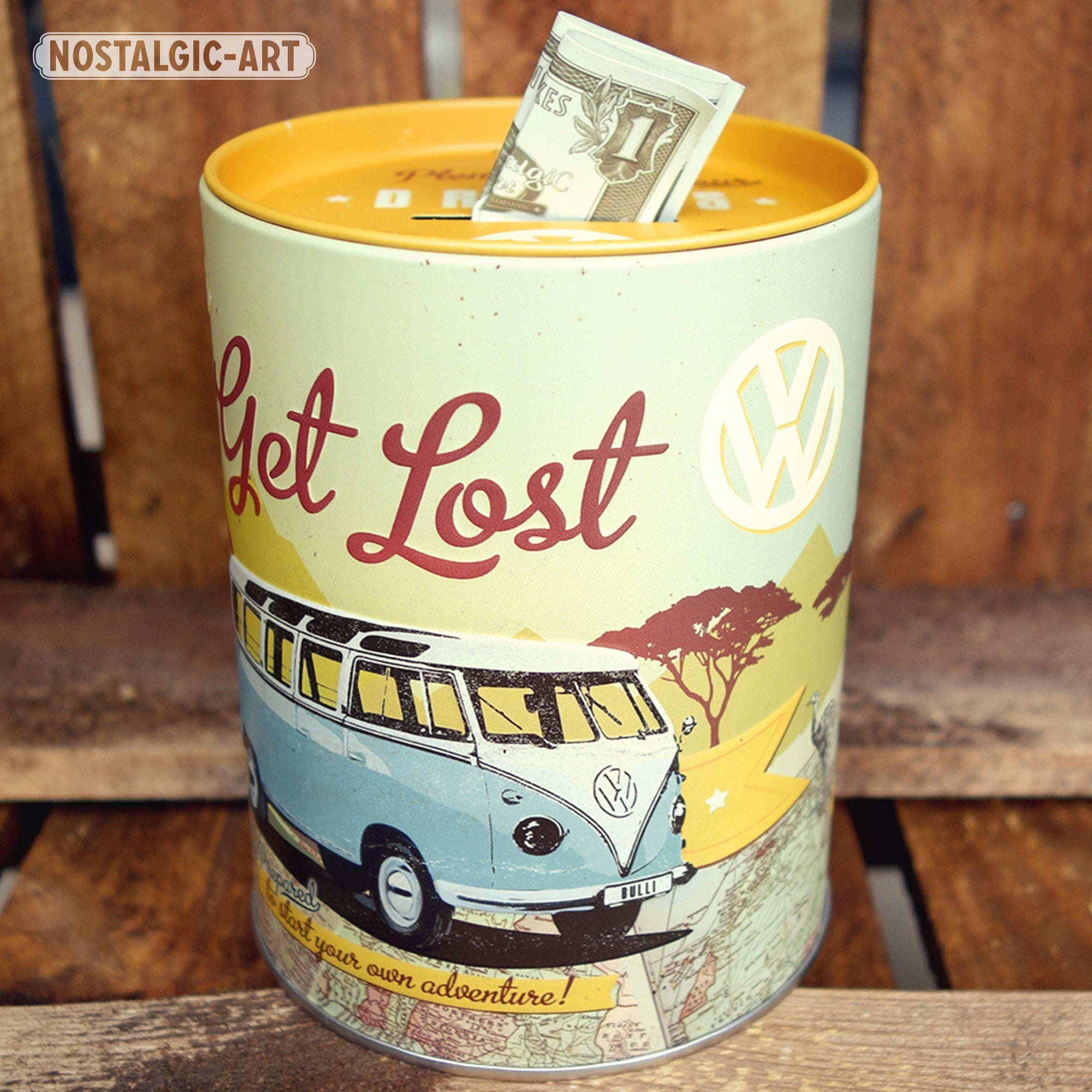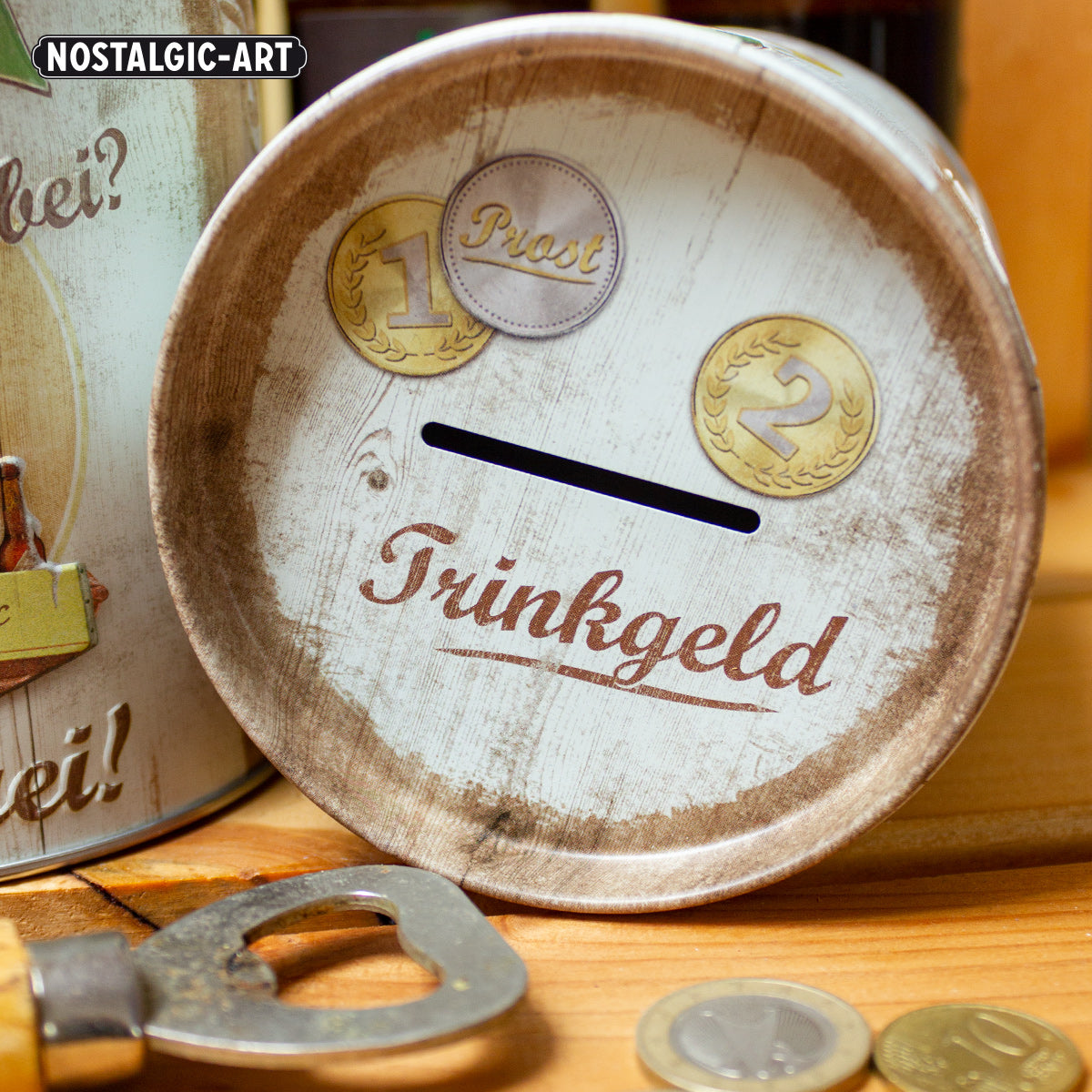 Die Spardose besteht aus robustem Stahlblech und hat ein Mattlack-Finish. Sie verfügt über einen abnehmbaren Deckel mit einem großen Sparschlitz. Sie ist 10 x 13 cm groß und bietet ein Fassungsvermögen von 1 Liter. Die Spardose ist rundum in einem schönen Design gestaltet und motivgeprägt auf mehreren Ebenen. Selbst die Unterseite ist bedruckt.