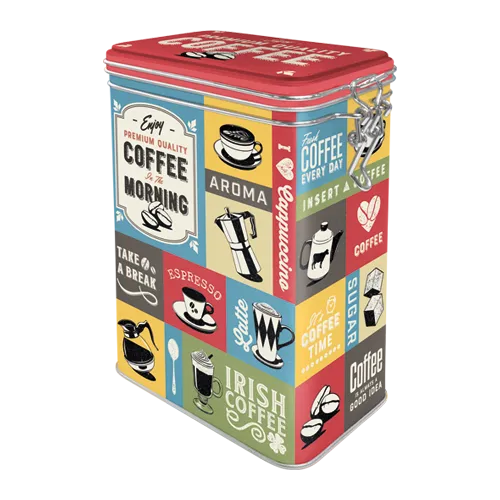 Die Aromadosen haben eine Größe von 7,5 x 11 x 17,5 cm und fassen 1,3 Liter, ideal für die luftdichte Lagerung von aromatischen Lebensmitteln. Sie sind mit einem stabilen Scharnierdeckel und einer Kunststoffdichtung ausgestattet, die das Eindringen von Luft verhindert und so die Frische und Aromen der Inhalte bewahrt. Die Dosen sind aus stabilem Blech gefertigt, matt lackiert und mit detaillierten Prägungen auf Deckel und Seiten verziert. Die Gestaltung erfolgt in Berlin, wobei der Fokus auf hoher Qualität und nostalgischem Design liegt.
