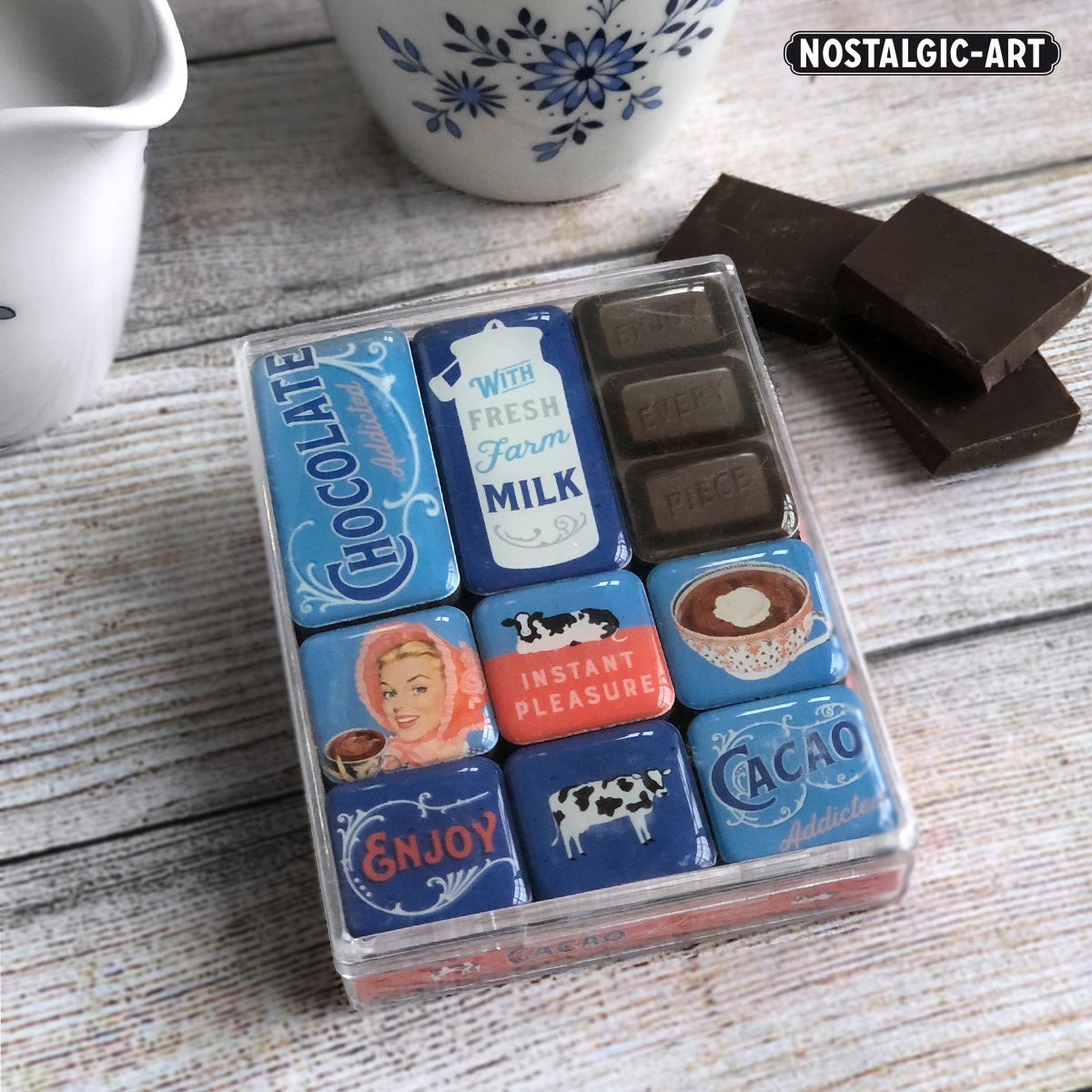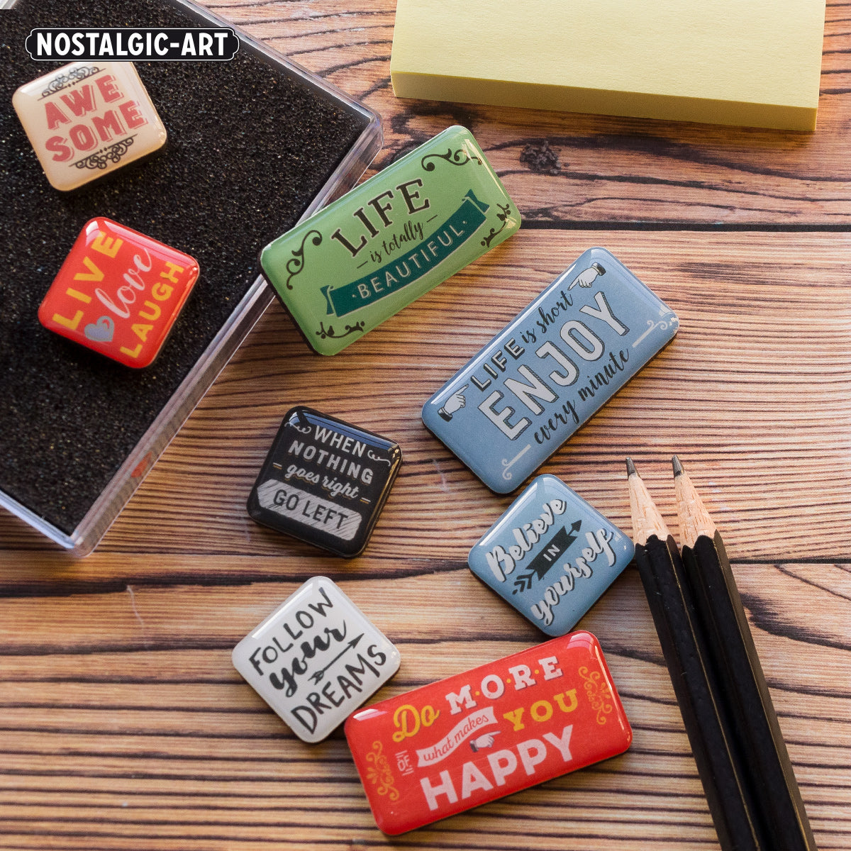 Unsere Magnet-Sets bestehen aus neun kraftvollen Magneten, die in einer transparenten Geschenkbox mit den Maßen 7 x 9,3 x 2 cm verpackt sind. Die Magnete sind quadratisch (2,2 x 2,2 cm) oder rechteckig (4,5 x 2,2 cm). Jede Magnetoberfläche ist mit einem hochwertigen Doming-Sticker versehen und mit einer Epoxidharz-Beschichtung überzogen, die für optimale Griffigkeit sorgt. Hergestellt aus robusten Materialien, bieten die Magnete starke Haftkraft und sind somit ideal für den Einsatz auf allen magnetischen Oberflächen.
