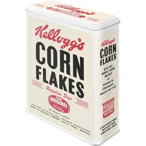 Our XL storage tin is the perfect blend of functionality and nostalgic design. Measuring 8 x 19 x 26 cm with a capacity of 4 liters, this tin is ideal for storing breakfast cereals and other dry goods. Crafted from durable metal and meticulously printed with vibrant, four-color designs, it features a matte finish and embossed details that add a touch of dimension and elegance. Beyond its charming retro aesthetic, this tin keeps your food fresh and protected from moisture, making it a stylish yet practical addition to any kitchen. Whether you’re organizing your pantry or looking for a unique gift packaging solution, this tin offers a decorative and sustainable alternative to ordinary storage options.